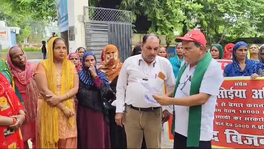 रसोइयों ने किरतपुर में प्रदर्शन कर खंड विकास अधिकारी किरतपुर के माध्यम से मुख्यमंत्री को मांग पत्र प्रेषित किया