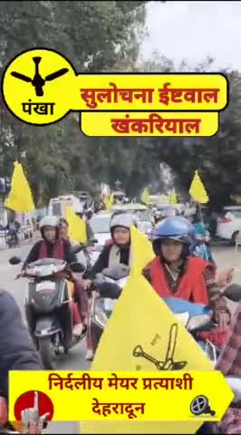 चुनिए उनको, जो आपके लिए सदा संघर्ष करते हैं। जो आपकी ताकत बनते हैं, उनकी ताकत बनिए। देहरादून नगर निगम मेयर पद पर श्रीमती सुलोचना ईष्टवाल खंकरियाल जी को अपना वोट देने का फर्ज निभाने का वक्त है। चुनाव चिन्ह : छत का पंखा