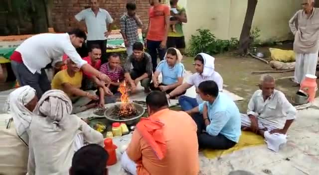 अपने ग्राम पंचायत खानपुर माधो में सावन के अंतिम सोमवार के अवसर पर हवन व भंडारा कराते हुए समाजसेवी डॉ कामेंद्र सिंह