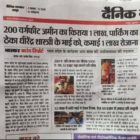 धीरेंद्रशास्त्री के भाई को 1 महीने की कमाई का ठेका ₹100000 रुपए