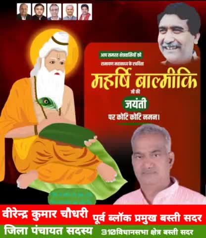 आप समस्त क्षेत्रवासियों को रामायण महाकाव्य के रचयिता महर्षि बाल्मीकि जी की जयंती पर कोटि कोटि नमन| 🙏🙏🌹🌹🙏🙏