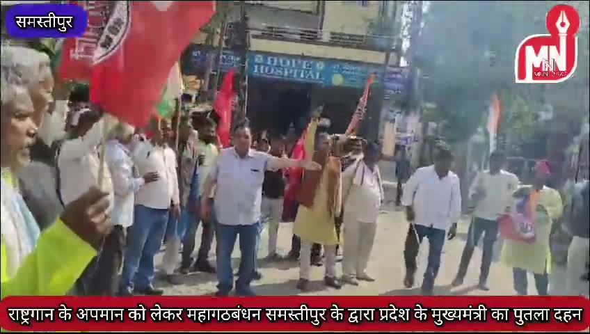 राष्ट्रगान के अपमान को लेकर महागठबंधन समस्तीपुर के द्वारा प्रदेश के मुख्यमंत्री का पुतला दहन।