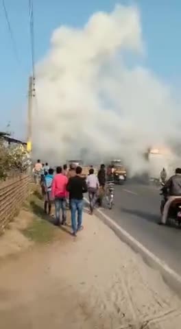फारबिसगंज: सेंफगंज पँचायत के बिच SH 77 .चलती टैकटर मे लगी आग चारो तरफ धुआं ही धुआँ