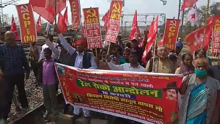 किसान विरोधी काला कानून के खिलाफ झारखंड रांची के नामकुम स्टेशन पर रेल रोको आन्दोलन।