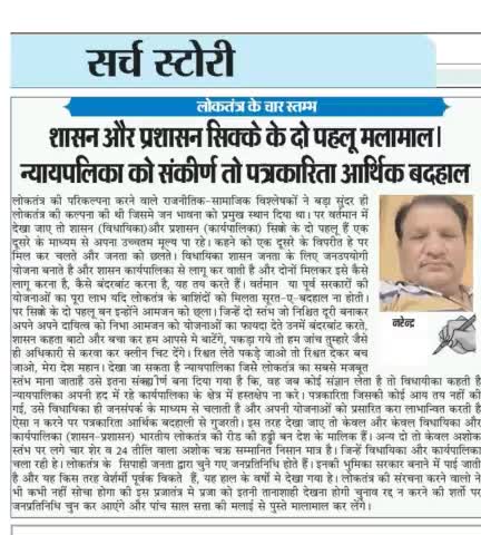 भारतीय लोकतंत्र के चार स्तम्भ पर संझिप्त मे कुछ विचार जो क्षेत्रीय नहीं सम्पूर्ण देश मे अनुभूत किया जा सकता