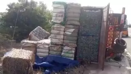 பல்லடம்: பல்லடம் அருகே அதிக பாரம் ஏற்றி வந்த சரக்கு லாரி கவிழ்ந்து விபத்துக்குள்ளானது