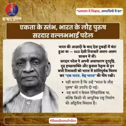 एकता के स्तंभ, भारत के लौह पुरुष सरदार वल्लभभाई पटेल #JhunjhunuPolice #SardarVallabhbhaiPatel #IronManOfIndia #एक_भारत_श्रेष्ठ_भारत
