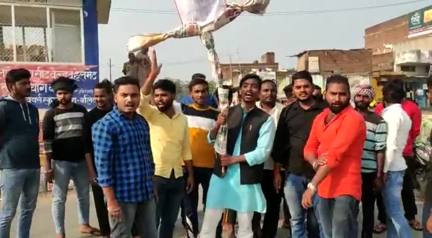 बांसडीह: सुखपुरा चौराहे पर बलिया जिलाधिकारी द्वारा ददरी मेला बन्द के आदेश के विरोध, छात्र नेताओं ने जिलाधिकारी का पुतला फूंका