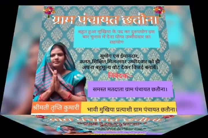 नोखा:-प्रखंड के अंतर्गत ग्राम पंचायत छतौना के भावी मुखिया प्रत्याशी श्रीमती तृप्ति कुमारी का चुनावी गीत हुआ वायरल...