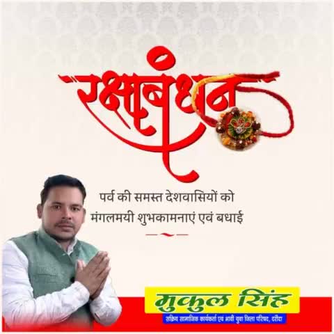 भाई बहन के असीम प्रेम, स्नेह एवं पवित्र रिश्ते का प्रतीक त्योहार रक्षाबंधन की आप सभी की बहुत बहुत बधाई एवं शुभकामनाएं।