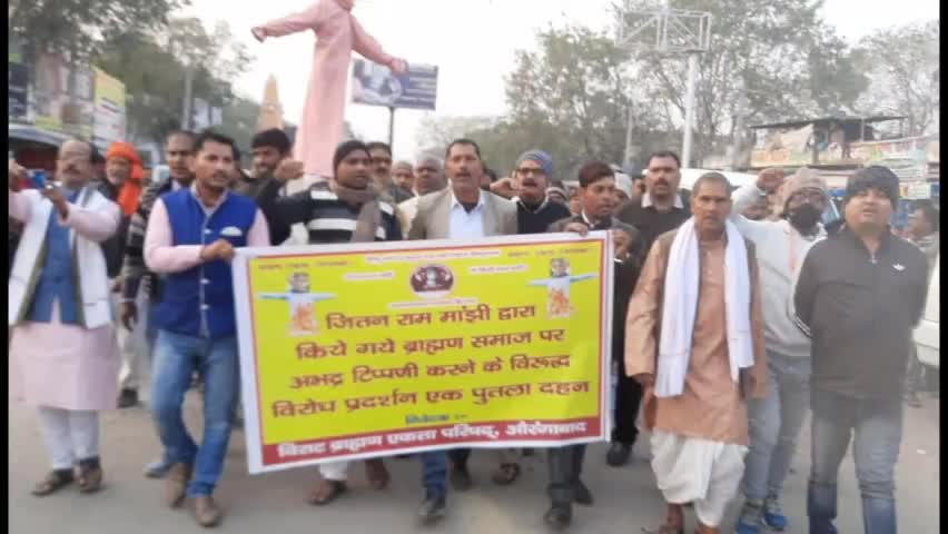 पूर्व मुख्यमंत्री जीतन मांझी द्वारा हिंदू धर्म एवं ब्राह्मणों को अपशब्द कहे जाने पर औरंगाबाद रमेश चौक पर विरोध प्रदर्शन