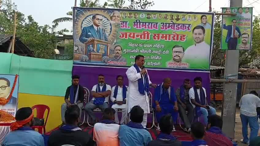 कटिहार:डॉक्टर भीमराव अंबेडकर जी के जयंती के उपलक्ष्य में राजद नेता श्री समरेंद्र कुणाल जी के द्वारा अपना संबोधन करते हुए