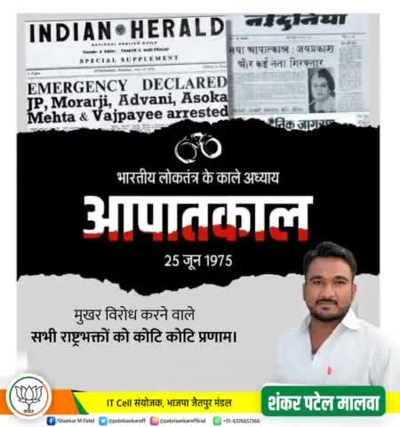 भारतीय लोकतंत्र और राजनीति के सबसे काले अध्याय 25 जून 1975 आपातकाल के विरोध में उठी हर आवाज को सादर नमन। #DarkDaysOfEme
