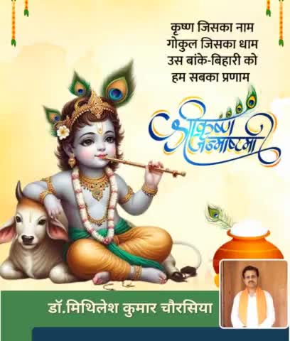 जय कन्हैया लाल की। श्री बांके बिहारी जी के पावन अवतरण दिवस 'श्रीकृष्ण जन्माष्टमी' की सभी श्रद्धालुओं को हार्दिक बधाई एवं शुभकामनाएं। धर्म की स्थापना एवं अधर्म, अन्याय तथा अत्याचार को समाप्त करने वाले संपूर्ण जगत के पालनहार की जय।