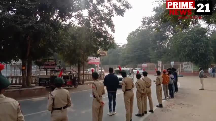 ग्वालियर : महाराज श्रीमंत ज्योतिरादित्य सिंधिया जी का एनसीसी के छात्रों ने किया भव्य स्वागत मोती महल प्रांगण में।