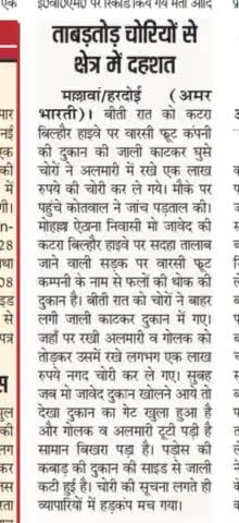 मल्लावां-हरदोई : ताबड़तोड़ चोरियों से क्षेत्र में दहशत #newspaper