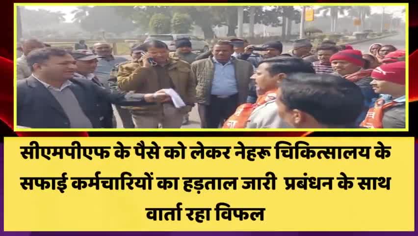 सीएमपीएफ के पैसे को लेकर नेहरू चिकित्सालय के सफाई कर्मचारियों का हड़ताल जारी