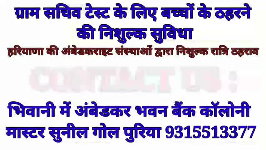 ग्राम सचिव परीक्षा के लिए पूरे हरियाणा में निशुल्क ठहरने की सुविधा HR अम्बेडकराईट सोसाइटियो द्वारा किया गया इंतजाम #RPP