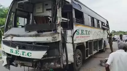 திருக்கோவிலூர் சடைகட்டி சாய்பாபா கோயில் பகுதியில் சித்தூர் - கடலூர் நெடுஞ்சாலையில் வேலூரில் இருந்து திருச்சி மார்க்கமாக சென்ற தமிழ்நாடு அரசு விரைவு போக்குவரத்து கழகத்திற்கு சொந்தமான சொகுசுப் பேருந்து ஓட்டுனரின் கட்டுப்பாட்டை இழந்து சாலையோர பள்ளத்தில் கவிழ்ந்து விபத்துக்குள்ளானதில் மூன்று பேர் படுகாயம் அடைந்தனர்