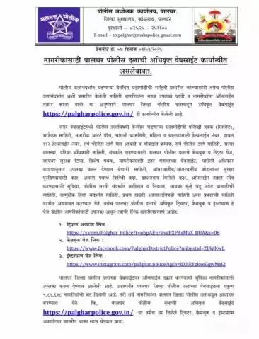 पालघर पोलीस दलाची अधिकृत वेबसाईट नागरिकांकरिता कार्यान्वित केले बाबत.