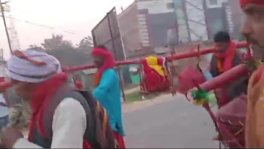 सिमरिया से दरभंगा गंगाजल पैदल लेकर संतोष झा एवं अन्य भक्तगण सुन्दरपुर महारानी पोखर शिवपार्वती मन्दिर में जल अर्पित किए।