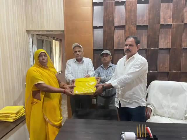 सकलडीहा: नगर के ब्लॉक कार्यालय में आगनवाड़ी कार्यकत्रियों को ब्लॉक प्रमुख ने साड़ी की वितरित