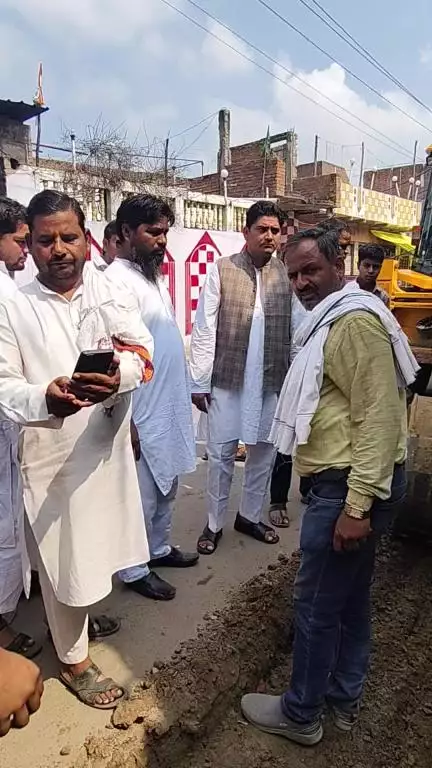 रामगढ़ रोड पर निर्माण कार्य के दौरान पार्षद कार्यकारिणी सदस्य इमरान मंसूरी अलकाब निजाम नफीस अंसारी राजू अल्वी