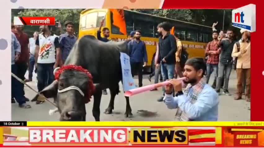 Varanasi : हिंदू विवि के छात्रों का अनोखा प्रदर्शन, भैंस के सामने बीन बजा कर छात्रों ने जताया विरोध