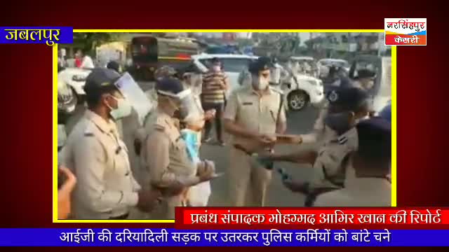 नरसिंहपुर: जबलपुर आई.जी भगवत सिंह चौहान ने बांटे पुलिस कर्मियों को चने के पैकेट, शहर की कानून व्यवस्थाओं का जायज़ा लिया
