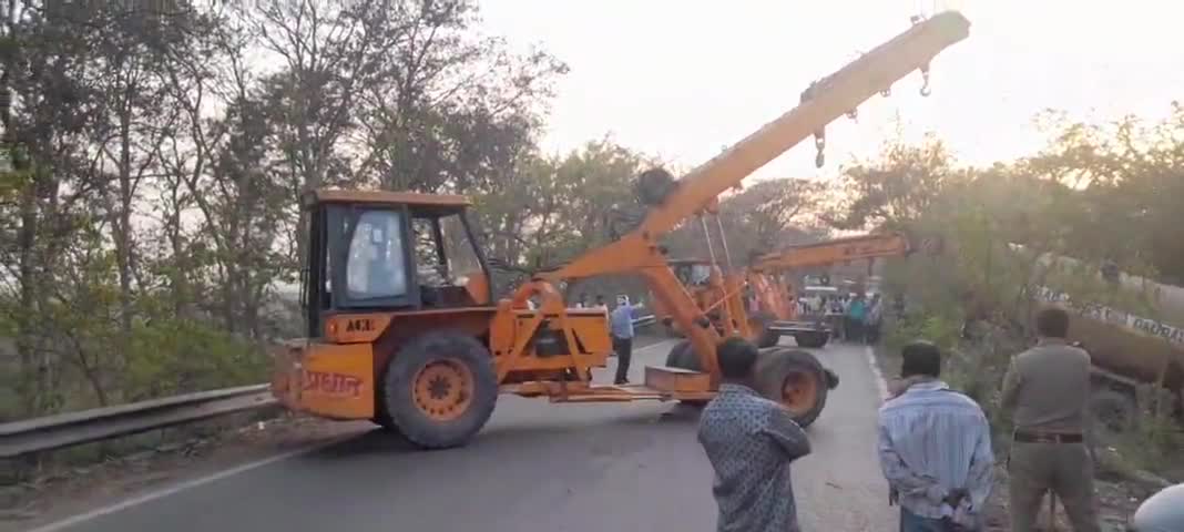 जानसठ: ग्राम पंचायत जीवनपुरी के समीप ओवरटेक करते समय खाई में पलटा टैंकर, चालक हुआ घायल