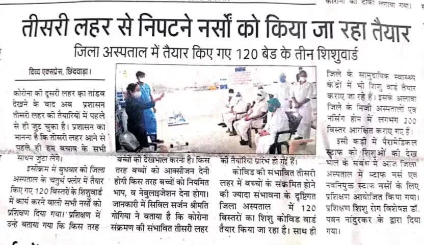 तीसरी लहर से निपटने नर्सों को किया जा रहा तैयार जिला अस्पताल में तैयार किये गये 120 बेड के तीन शिशु वार्ड #कलेक्टर छिंद
