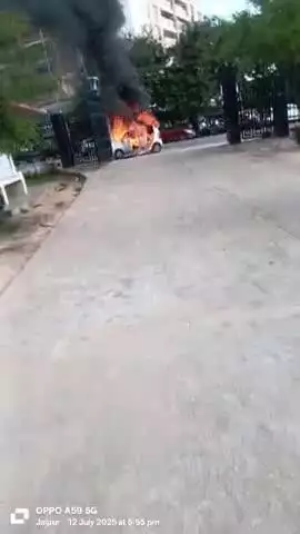 Mansarovar VT road mein chalti kar mein lagi Aag Van chalak Ko pata chala to utar kar bhag gai