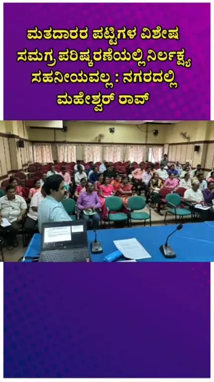 ಮಂಗಳವಾರ ಸಂಜೆ 6 ಗಂಟೆ ಸುಮಾರಿಗೆ ಮಲ್ಲೇಶ್ವರಂ ಐಪಿಪಿ ಕೇಂದ್ರದಲ್ಲಿ ಹಮ್ಮಿಕೊಳ್ಳಲಾಗಿದ್ದ ಮತದಾರರ ಪಟ್ಟಿಗಳ ವಿಶೇಷ ಸಮಗ್ರ ಪರಿಷ್ಕರಣೆ- 2025ಕ್ಕೆ ಸಂಬಂಧಿಸಿದಂತೆ ಮತದಾರರ ನೋಂದಣಾಧಿಕಾರಿಗಳು (EROs) ಹಾಗೂ ಸಹಾಯಕ ಮತದಾರರ ನೋಂದಣಾಧಿಕಾರಿಗಳ 2ನೇ ಹಂತದ ತರಬೇತಿ ಕಾರ್ಯಾಗಾರ ನಡೆದಿದ್ದು, ಕಾರ್ಯಗಾರದಲ್ಲಿ ಮಾತನಾಡಿದ ಮುಖ್ಯ ಆಯುಕ್ತ ಮಹೇಶ್ವರ್ ರಾವ್ ಅವರು, ಮತದಾರರ ಪಟ್ಟಿಗಳ ವಿಶೇಷ ಸಮಗ್ರ ಪರಿಷ್ಕರಣೆ- 2025 ರ ಕಾರ್ಯದಲ್ಲಿ ನಿರ್ಲಕ್ಷ್ಯ ತೋರಿದ ಅಧಿಕಾರಿಗಳು ಹಾಗೂ ಗೈರು ಹಾಜರಾಗುವ ಅಧಿಕಾರಿಗಳ ವಿರುದ್ಧ ಶಿಸ್ತು ಕ್ರಮ ಕೈಗೊಳ್ಳಲಾಗುವುದು ಎಂದು ತಿಳಿಸಿದರು.