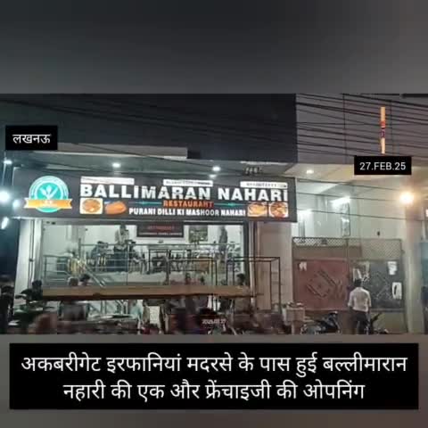 लखनऊ में अब एक और बल्लीमारान नहारी ब्रांच खुल गई अकबरिगेट इरफानिया मदरसे के बिल्कुल पास दिल्ली की मशहूर बल्लीमारान नहारी