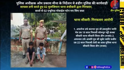 सायबर ठगी करते हुए 02 मुलजिमान थाना सीकरी द्वारा गिरफ्तार, कब्जे से 02 मोबाईल फोन मय सिम जब्त