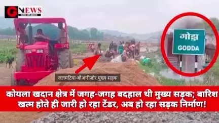 झारखंड/गोड्डा : कोयला खदान क्षेत्र में जगह-जगह बदहाल थी मुख्य सड़क; बारिश खत्म होते ही जारी हो रहा टेंडर, अब हो रहा सड़क न