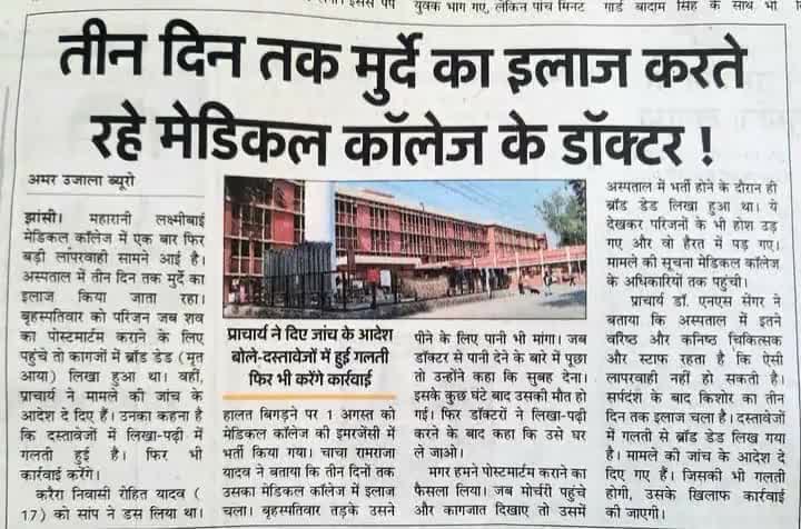 महारानी लक्ष्मी बाई मेडिकल कॉलेज झांसी का प्राचार्य खुद भ्रष्टाचारी है वह क्या जांच करेगा प्राचार्य पर कई सालों से भ्रष्टाचार के आरोप लग रहे हैं