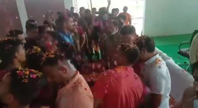 पुलिस लाइन आजमगढ़ में फूलों की होली।