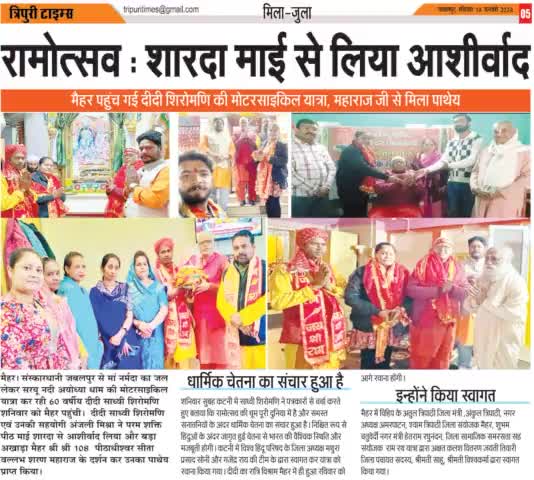 रामोत्सव मईया नर्मदा का जल लेकर मोटरसाईकिल से अयोध्या सरयू जी को समर्पित कर राम लला की स्थापना की साक्षी बनेंगी साध्वी