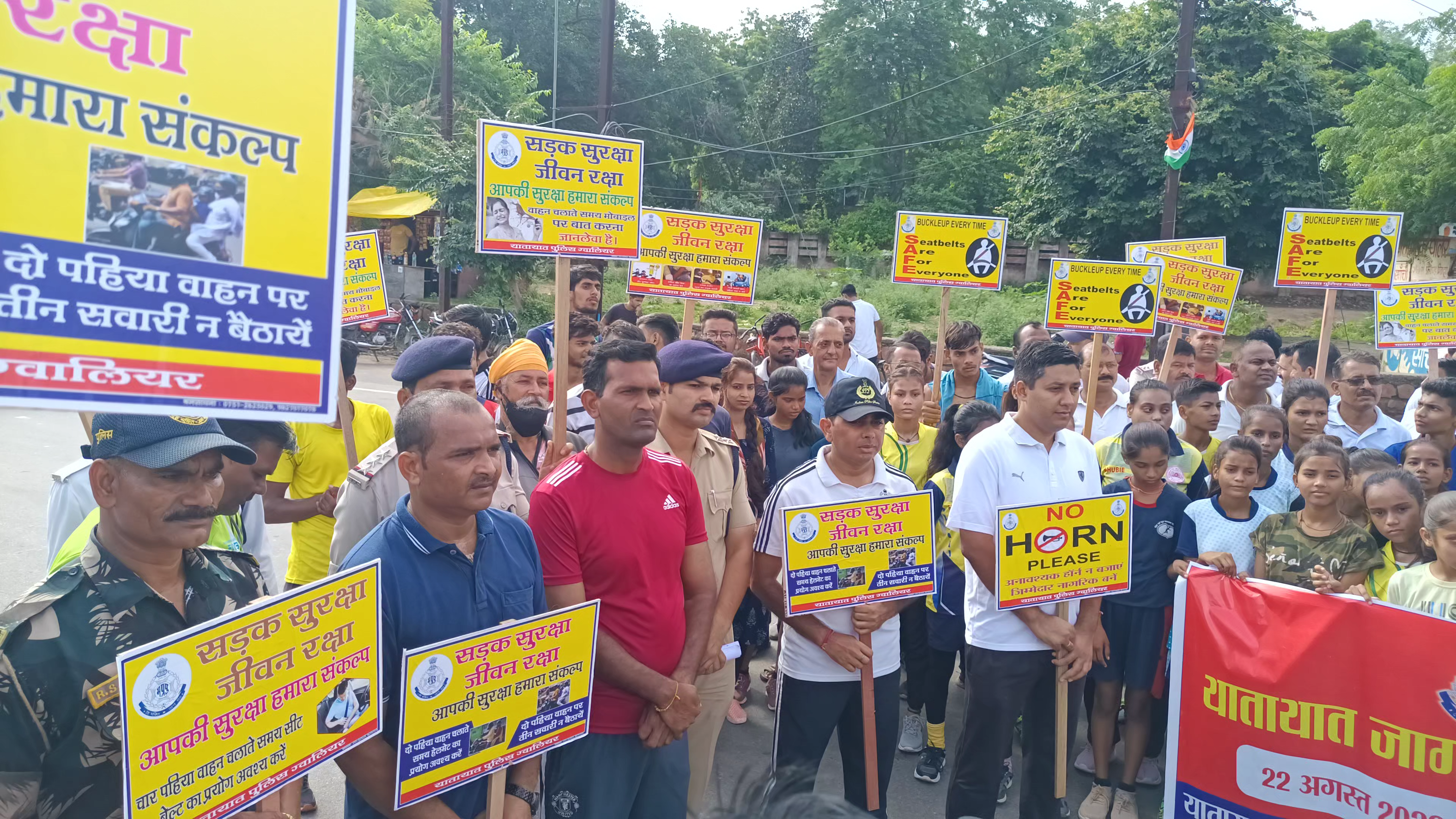 आज ग्वालियर sp द्वारा की गई सड़क सुरक्षा सहायता रोड सेफ्टी रन का आयोजन #gwaliorpolic #police