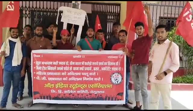 आइसा द्वारा जीडी कॉलेज में वयाप्त भ्रष्टाचार के खिलाफ प्राचार्य का पुतला दहन ।