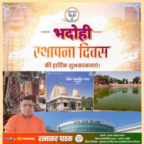 गौरवशाली इतिहास, संस्कृति व परम्परा के रंगों से सुसज्जित जनपद भदोही के 31वें स्थापना दिवस की शुभकामनाएं।
