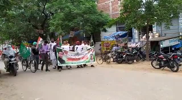 भगवानपुर: mahagathbandhan ke साथियों संग महँगाई के खिलाफ आक्रोश march me शामिल hote huye प्रकाश Gaurav Pandey youth leader Congres