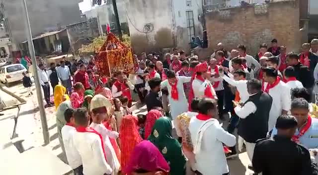 नावां: नावां उपखंड के ग्राम मारोठ में विश्वकर्मा जयंती पर शोभा यात्रा निकाली गई मुख्य मार्गो से होती हुई मंदिर परिसर पहुंची