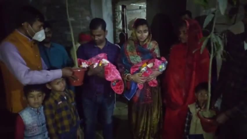 रोसड़ा: ऑक्सीजन मैन सह ट्रीमैन राजेश कुमार सुमन पवड़ा गांव में जुड़वा बच्चे जन्म होने पर पौधा भेंट कर हरित शुभकामनाएं दिया।