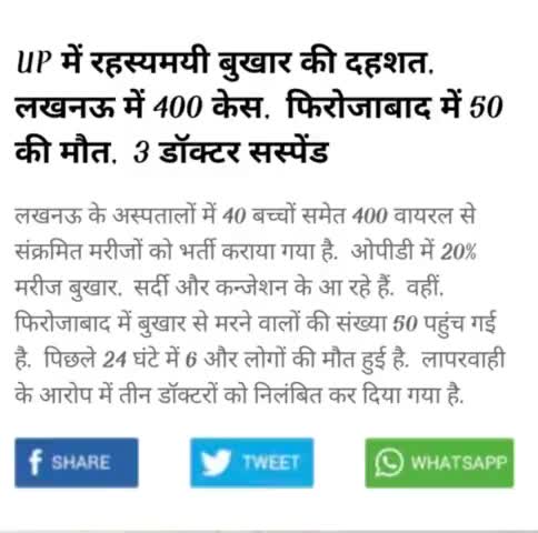 UP में रहस्यमयी बुखार की दहशत, लखनऊ में 400 केस, फिरोजाबाद में 50 की मौत, 3 डॉक्टर सस्पेंड