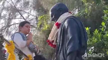 સુરત: રાષ્ટ્રપિતા મહાત્મા ગાંધીની ગાંધી જયંતિ નિમિત્તે સુરત શહેરમાં ઉત્સાહભેર ઉજવણી કરવામાં આવી હતી. આ અવસર પર શહેરના મુખ્ય સ્થળ ચોકબજાર ખાતે આવેલી ગાંધી પ્રતિમાને મહાનુભાવો દ્વારા સૂત્રાંજલિ અર્પણ કરવામાં આવી હતી.આ ઉજવણીમાં મનપાના મેયર, ડેપ્યુટી મેયર સહિતના પદાધિકારીઓ તેમજ મનપાના અધિકારીઓ ઉપસ્થિત રહ્યા હતા. સૌએ સાથે મળીને ગાંધીજીની પ્રતિમાને હાર પહેરાવી તથા સૂતરની આંટી અર્પણ કરીને રાષ્ટ્રપિતાને ભાવભીની અંજલિ આપી હતી.
