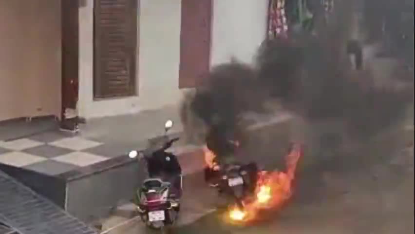 #प्रयागराज के नैनी थाना के अंतर्गत हाईवोल्टेज तार गिरने से खड़ी बाइक धू धू कर जलने लगी।, somraj स्वर्णकार की रिपोर्ट