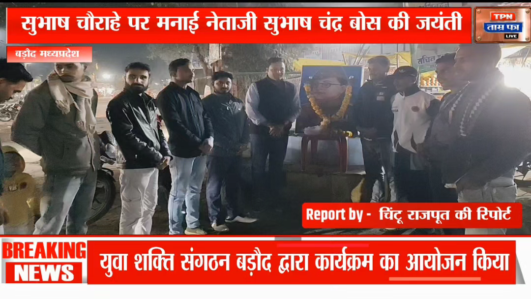 बड़ौद नगर के सुभाष चौराहे पर नेताजी सुभाष चंद्र बोस की जयंती युवा शक्ति संगठन द्वारा मनाई गई।