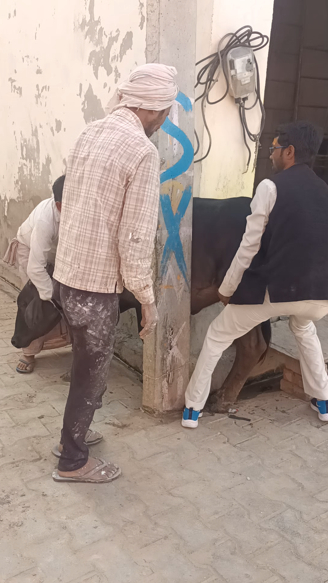 फसी हुई गौ माता को निकालते हुए टीम सर्व समाज लाडो हेल्प फाउंडेशन
